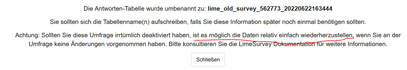 Das wäre super, wie geht das? Wenn ich bei der Umfrage auf "Diese Umfrage stoppen" klicke, kann ich entweder A) "Umfrage zeitlich beenden" oderICH hätte die Umfrage einfach kurz deaktiviert, die beiden Fragen hineingeklimpert, und wieder aktiviert. Dabei kannst Du ja die "alten" Daten importieren.