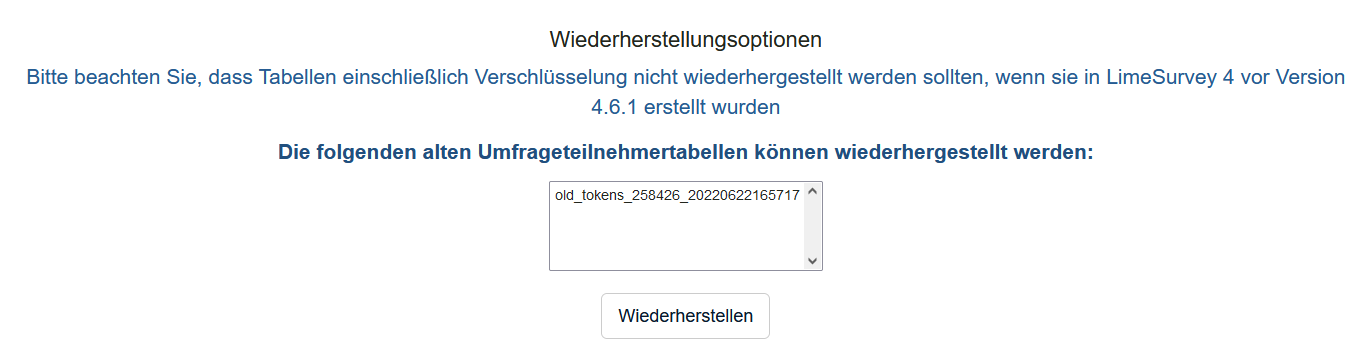 Ja, ich möchte natürlich nur dieselbe Umfrage benutzen. Meine Frage: Wie sehe ich das? Also welche welche ist? Welchen Dropdown muss ich nehmen? Danke im VorausDu sollst nur dieselbe Umfrage für Deine Änderung benutzen, damit LimeSurvey eben die alten Daten und die alte Token-Tabelle wiederfindet.