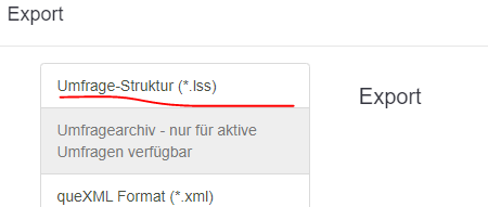 Im Allgemeinen wollen wir nicht die gesamte Umfrage als lss Export, nur die relevanten Fragen.