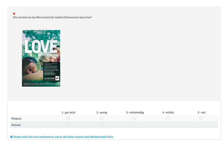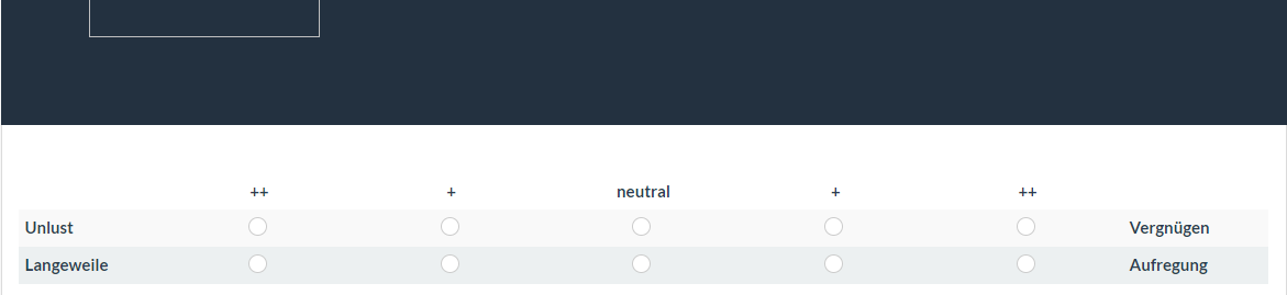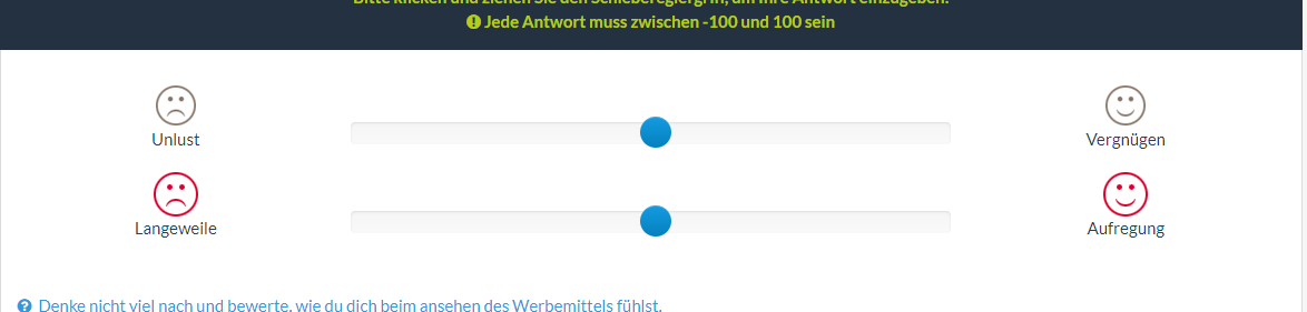 Wenn hier dann im Hintergrund tatsächlich noch die Skala von "-100" bis "+100" laufen könnte ohne es den TN anzuzeigen wäre das super für die Auswertung später!
