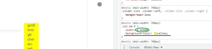 Breite des Textes geändert, eine Hintergrundfarbe hinzugefügt.