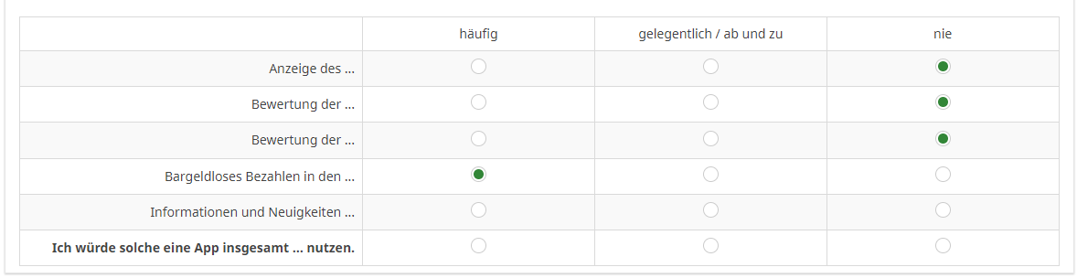 2. Frage: (Filter: Alle Features werden "nie" benutzt)