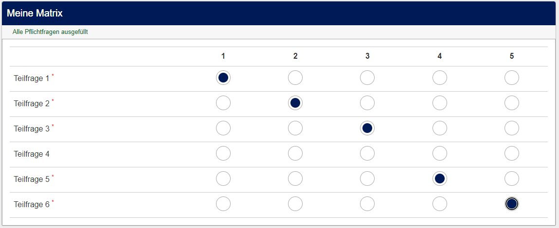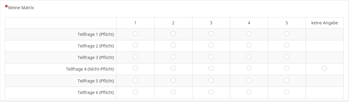 1. Falls einige Items leergelassen werden können, ist die gesamte Frage also als "Nicht-Pflichtfage" anzulegen.
