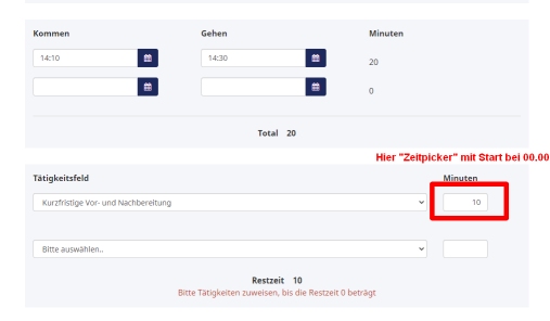 Und- anderer Vorschlag, da meiner Ansicht nach dieser Timepicker ausgesprochen "blöd" zu bedienen ist - entweder klicke ich mich tot oder schreibe es doch einfach rein, wäre