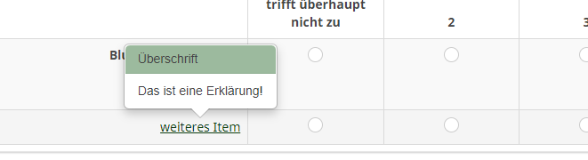 ich möchte bei einer Matrixfrage bei den Teilfragen ein Tooltipp einblenden. Ich habe mich beim Vorgehen an dieser Erklärung orientiert: