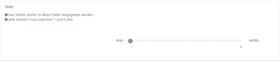 Bei der Fragenvorschau wir zwar die Beschriftung angezeigt aber kein Schiebebalken mit einem Knopf (siehe Bild).