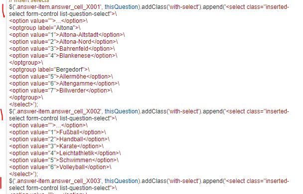 So, langer Rede, kurzer Sinn.Die dargestellten Codes sollten nicht aus diesem Text in LimeSurvey kopiert werden.Es könnten sich noch Reste der Formatierung im Text befinden, der den Code dann unbrauchbar macht.Daher bitte diese Codestücke immer aus der Beispielstudie übernehmen.