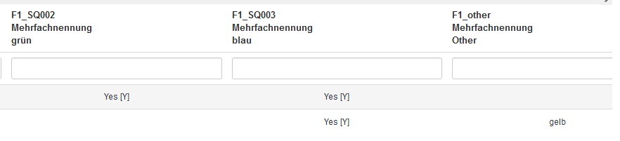 Du hast im Ausgangspost nur Matrixblöcke erwähnt. Welchen Fragetyp hast Du jetzt gemeint? Was hast Du ausgefüllt? Und wo vermisst Du eine Spalte genau?Das sieht alles gut aus jedoch wird eine Spalte, bei der ich 4 optionen + sonstiges mit freitext anbiete nicht angezeigt.