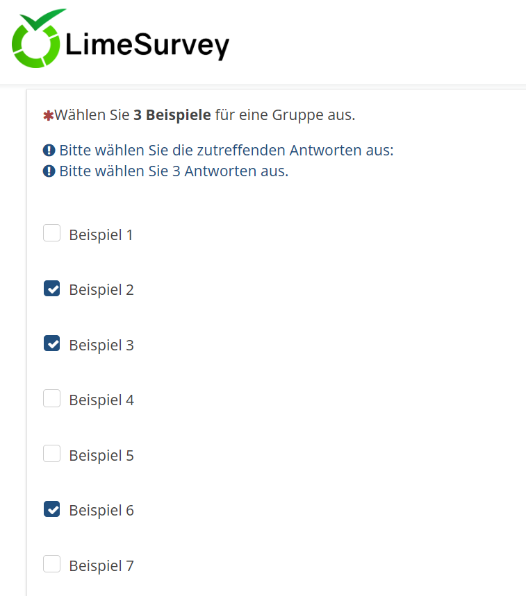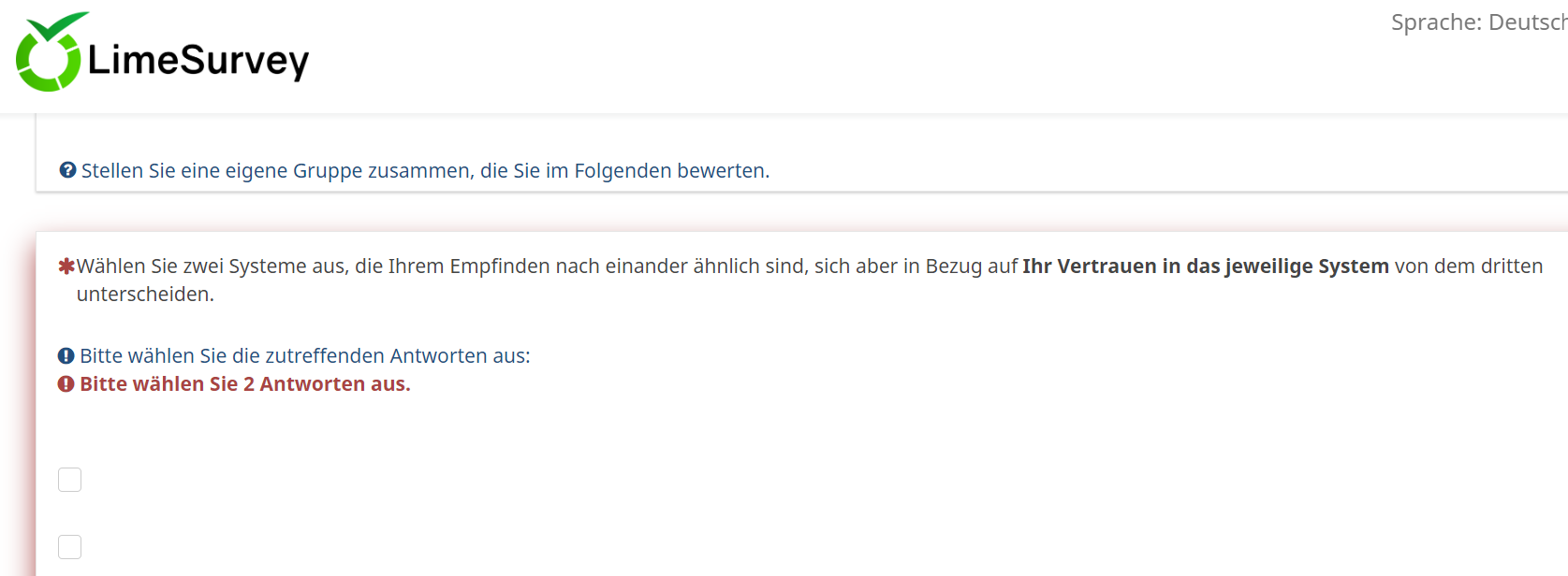 In der zweiten Frage werden nun zwei Antworten angeboten, nämlich 2 und 3, allerdings ohne Betextung. Diese hast Du ja auch nicht eingetragen