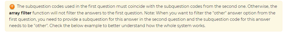 Wie in der Beschreibung des Matrixfilters im Handbuch zu lesen ist, müssen die Codes beider Fragen identisch sein