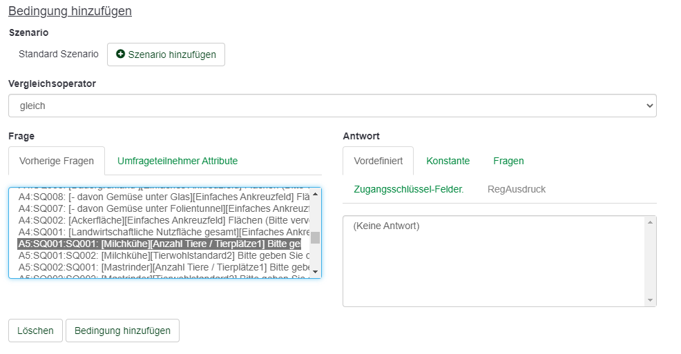 Und die Bedingung ist doch die Bedingung, unter der die nächste Frage gezeigt wird; also gehört sie auch in dieses Feld - aber der nächsten Frage - hinein.