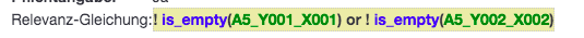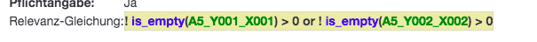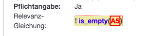 2. Ich habe es mit der Relevanzgleichung versucht: !is_empty(A4) - hier wird aber A4 als undefinierte Variable gezeigt.