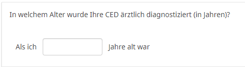 Auch wird das Alter nicht gegen die Frage nach Alter bei der ersten Diagnose von CED geprüft