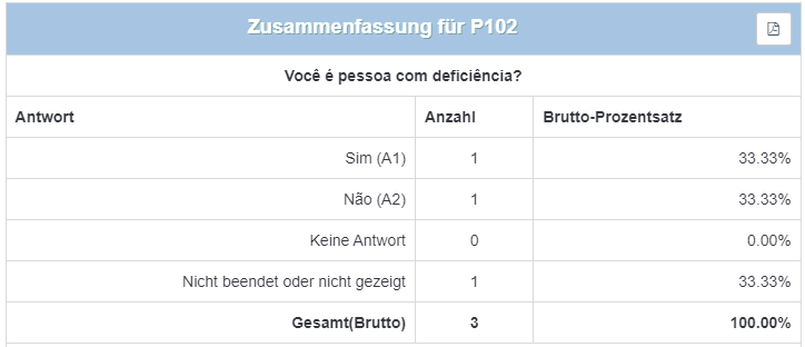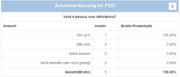 Aber diese hier in LimeSurvey eingebaute "Statistik" eignet sich natürlich nicht besonders für Deine Zwecke.
