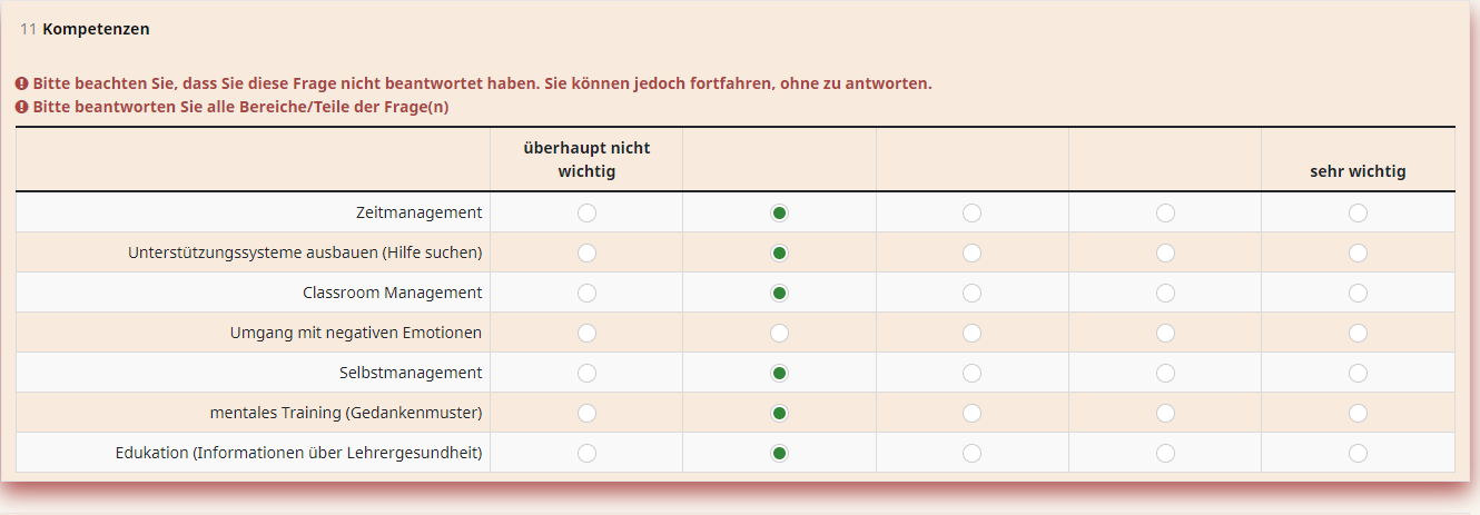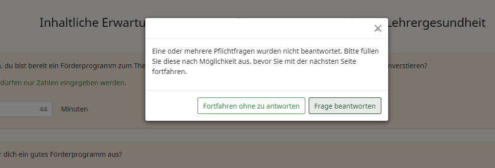 Dies kann ich - ebenfalls in 6.1.0. - nicht reproduzieren.Wenn man eine Frage als Pflicht markiert und dann die Person eine Frage vergisst werden bei mir alle Fragen der Fragegruppe wieder zurückgesetzt. Ist das immer so?