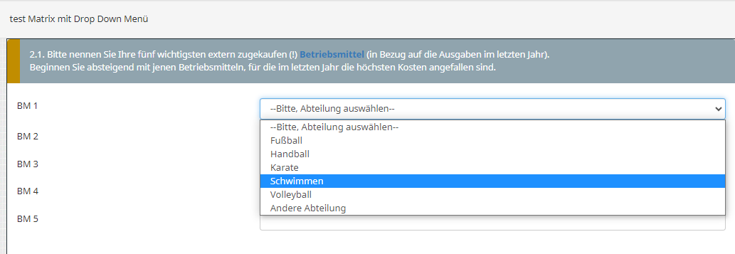Dieses Drop-down wird also in der Zeile "inputnum-1" dargestellt. Die "-1" ist nur dazu da, um die "normale" Zählung 1,2,3,... in die Programmiersprachzählung 0,1,2,... umzuwandeln.// Hide the text input