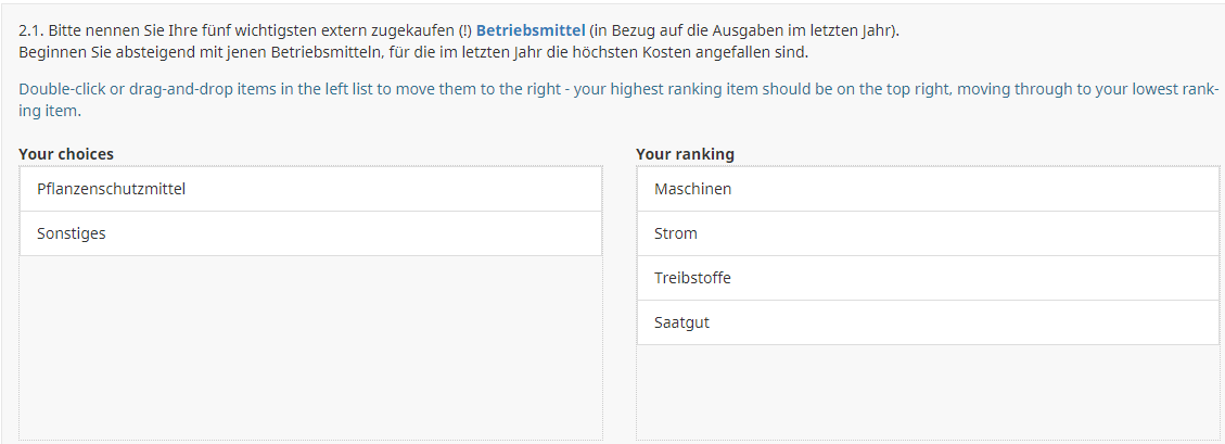 Die dargestellten Codes sollten nicht aus diesem Text in LimeSurvey kopiert werden.Es könnten sich noch Reste der Formatierung im Text befinden, der den Code dann unbrauchbar macht.Daher bitte diese Codestücke immer aus der Beispielstudie übernehmen.