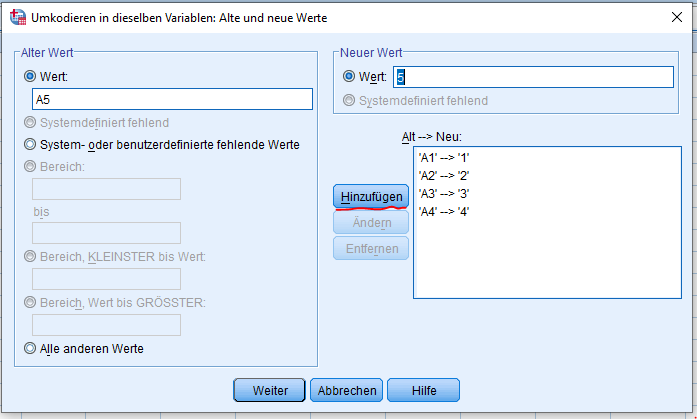 wie kann ich naträglich die antwortcodes umcodieren und aus A1 eine 1 machen? HIlft hier die Syntax-Datei? wenn ja, wo finde ich diese?