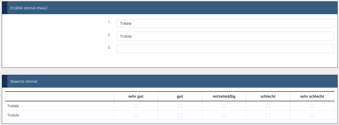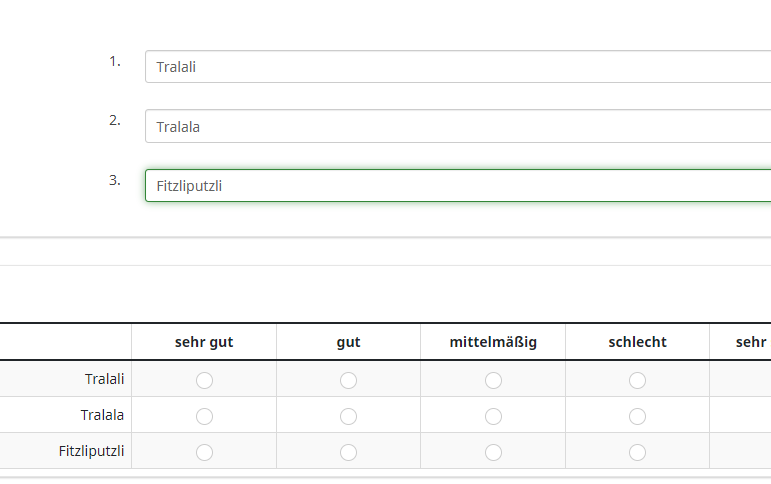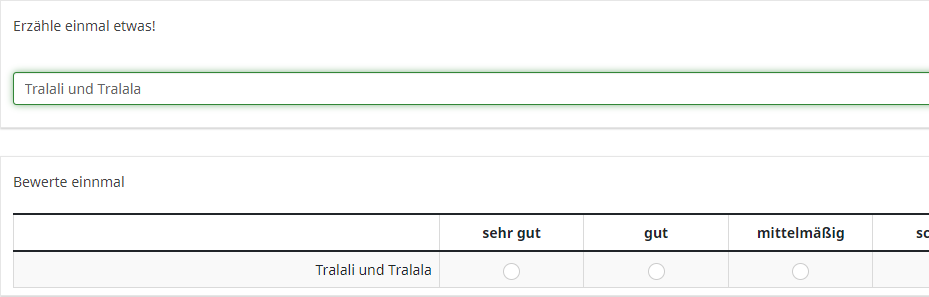 woraus man schließen kann, dass e3s mehrere Antworten in Frage 1 gibt, also vielleicht "mehrfache kutze Texte"