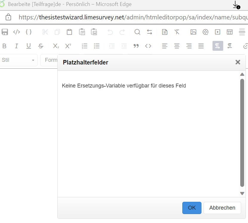 Hier wird mir entweder "keine Ersetzungsvariable für dieses Feld" oder "QID" angezeigt.