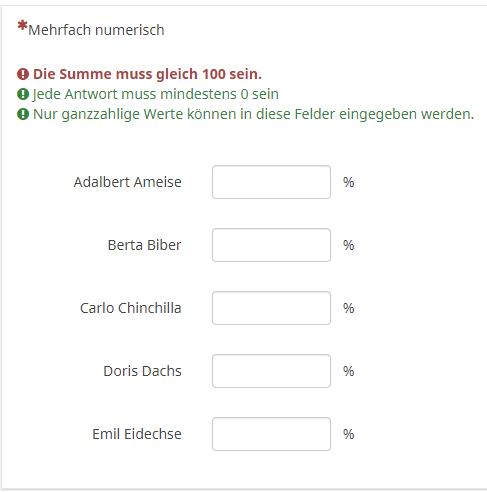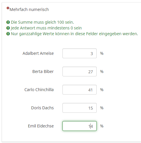 Wenn die den Typ "mehrfache numerische Eingabe" benutzt, hast Du doch dies alles als Frageneinstellung.