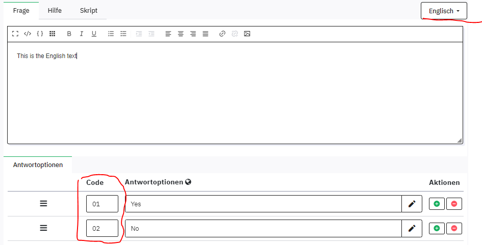 Du siehst, dass die Codes nur in der Basissprache überhaupt editierbar sind.