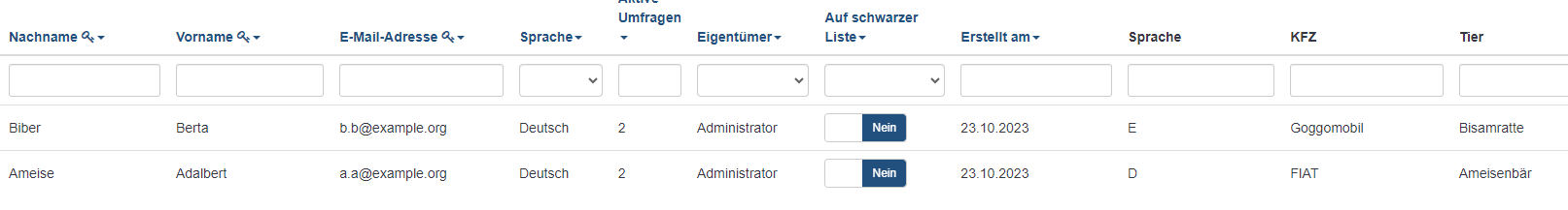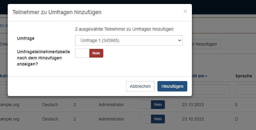 Dann wieder in der CPDB die Teilnehmer ausgewählt und zur jeweiligen Umfrage zugefügt