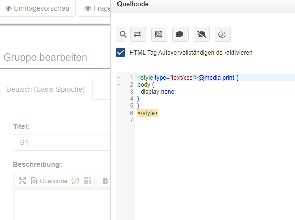 Wenn sich eine Anweisung nur auf eine einzige Frage bezieht, ist es oft besser, die Anweisung direkt in den Fragetext zu schreiben (natürlich im Quellcode-Modus)