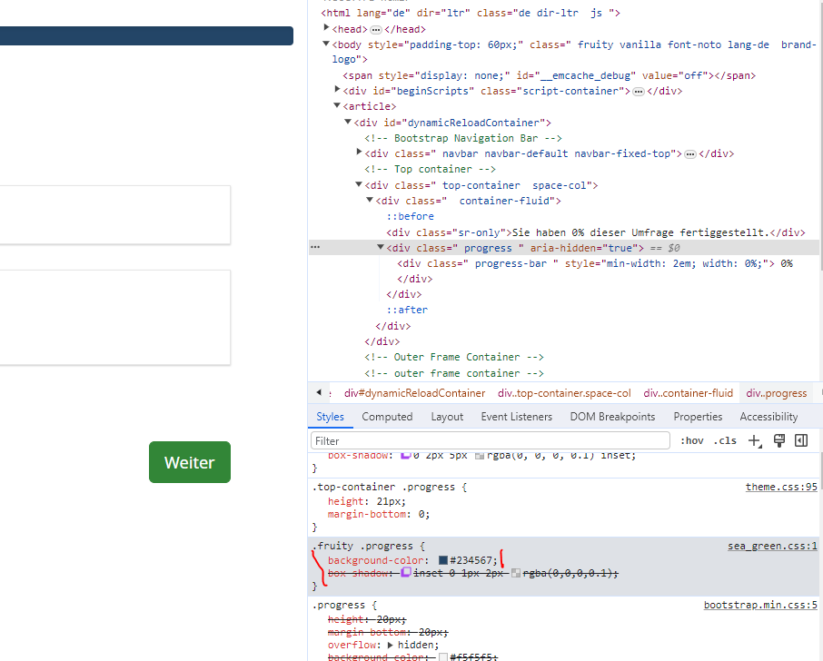 Außerdem kannst Du die "theme.css" anschauen, um auch dort zu sehen, was es gibt, wie es definiert ist; und dann in der "custom.css" überschreiben.