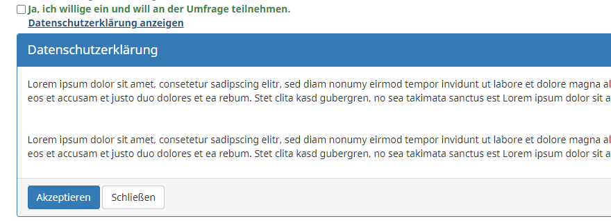 Wenn Du dem Teilnehmer eine Information geben willst, benutze eine Frage vom Typ "Textanzeige"