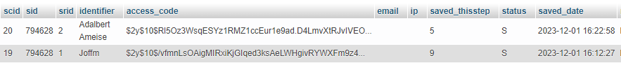 Die eingegebenen Daten sind in der Datenbank-Tabelle "lime_survey_123456" (also die SurveyID)
