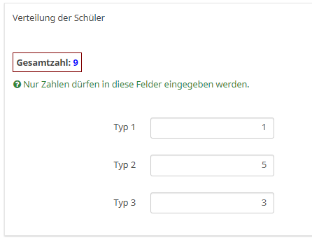 Du scheinst eine mehrfache Zahleingaben mit vier Teilfragen anlegen zu woillen, oder?