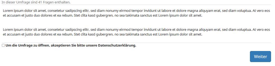 Da das für Teilnehmer evt. verwirrend ist, wollte ich fragen wie ich diesen Text wegbekomme. In den Einstellungen der Umfrage finde ich leider nichts passendes. Auf globale Einstellungen habe ich leider keinen Zugriff.