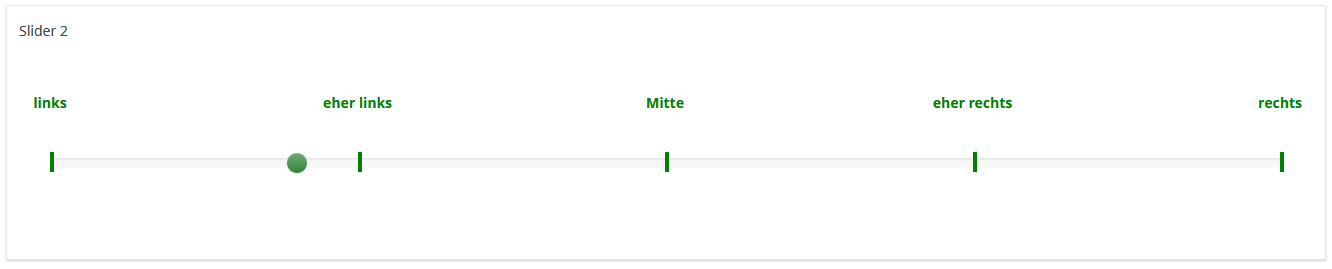 2. Ein Slider mit nur 5 Punkten ist sicher nicht "das Gelbe vom Ei"; ein Slider dient doch gerade dazu, eben nicht nur diskrete Werte, sondern die ganze Skala der "Zwischentöne" abzudecken
