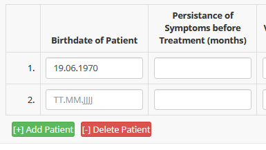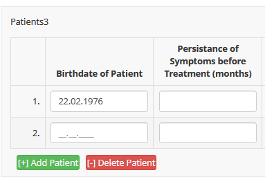 -Persistance of Symptoms before Treatment, sowie Additional treatments sollen so bleiben, wie sie sind (freie Zahleneingabe und freier Text)