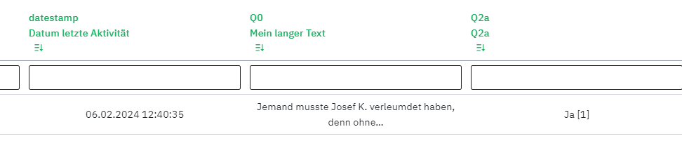 wir haben zwei "mehrfache kurze Text"-Fragen (Q1a und Q1b)