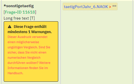 {if(!is_empty(Q1b_3) and !is_int(Q1b_3),'<span style="color:red">Nur Zahlen bitte', if(!is_empty(Q1b_3) and (Q1b_3<1 or Q1b_3>99999),'<span style="color:red">Nur Zahlen zwischen 1 und 99999', '<span style="color:transparent">Nur Zahlen zwischen 1 und 99999'))}</span>