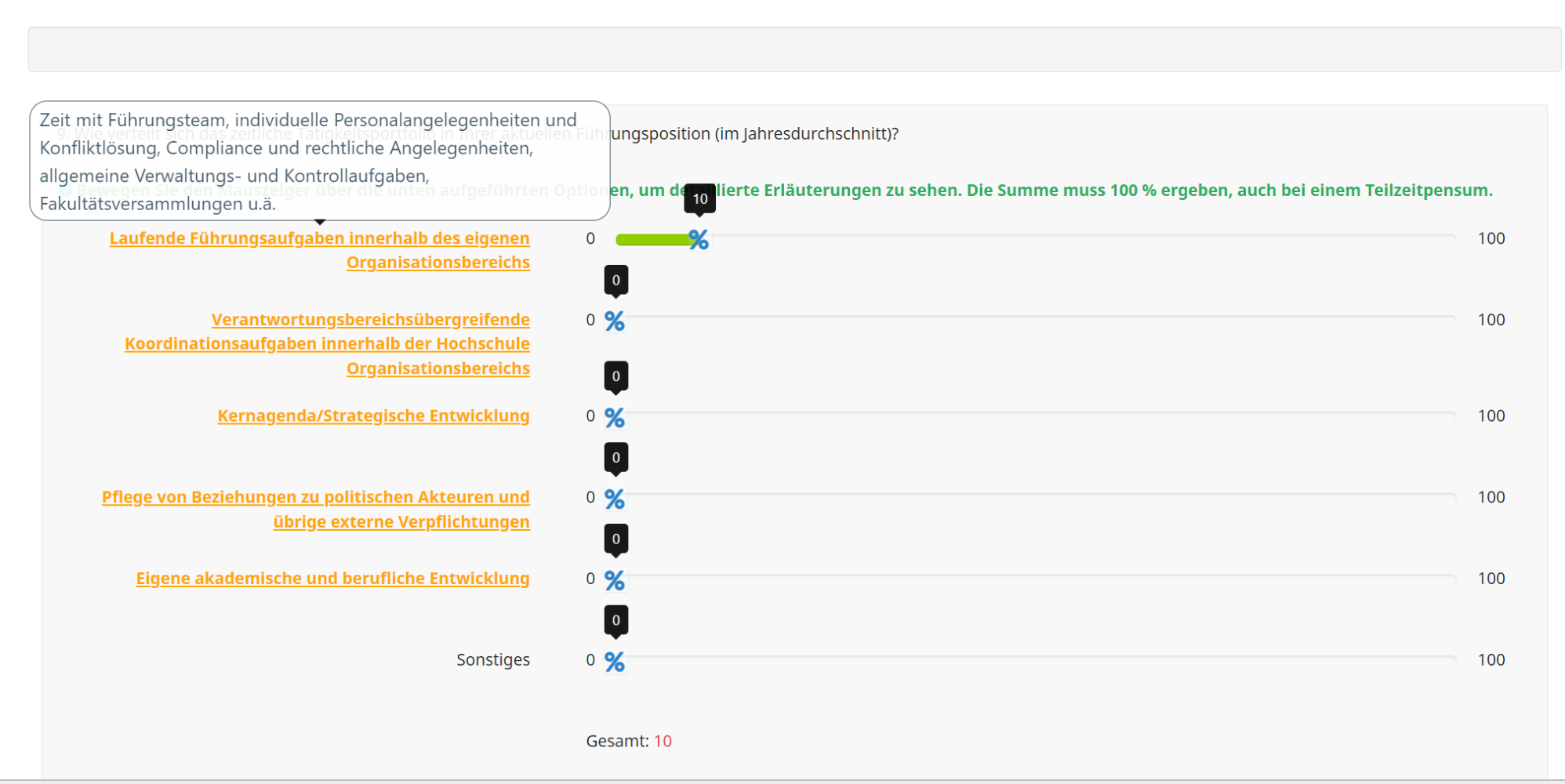 <span class="mytooltip1" data-bs-toggle="tooltip" title="Zeit mit Führungsteam, individuelle Personalangelegenheiten und Konfliktlösung, Compliance und rechtliche Angelegenheiten, allgemeine Verwaltungs- und Kontrollaufgaben, Fakultätsversammlungen u.ä.">Laufende Führungsaufgaben innerhalb des eigenen Organisationsbereichs</span>