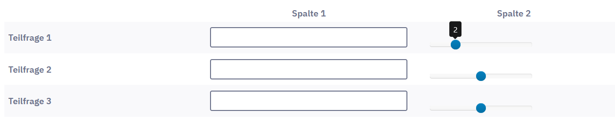 <script type="text/javascript" charset="utf-8"> // Script zuum Einfügen der Checkboxen anstelle der Textfelder und Einstellen der Exclusivität $(document).on('ready pjax:scriptcomplete',function(){ // Identify this question var thisQuestion = $('#question{QID}'); // Column-specific classes $('tr.subquestion-list', thisQuestion).each(function(i) { $('th, td', this).each(function(i) { $(this).addClass('column-'+i); }); }); // Insert checkboxes $('.answer-item.column-1, .answer-item.column-2, .answer-item.column-3, .answer-item.column-4, .answer-item.column-5', thisQuestion).addClass('custom-checkbox-item'); $('.custom-checkbox-item', thisQuestion).each(function(i) { var thisID = $('input:text:eq(0)', this).attr('id'); $('label', this).before('<input class="" id="'+thisID+'" value="Y" type="checkbox" name="'+thisID.replace(/answer/, '')+'" />'); if($('input:text:eq(0)', this).val() == 'Y') { $('input:checkbox:eq(0)', this).prop('checked', true); } $(this).removeClass('text-item').addClass('checkbox-item'); $('input:text:eq(0)', this).remove(); }); // Identify exclusive items $('.answer-item.column-1, .answer-item.column-2, .answer-item.column-3, .answer-item.column-4, .answer-item.column-5', thisQuestion).addClass('exclusive-item'); // Listeners for exclusive items $('.non-exclusive-item input:checkbox', thisQuestion).on('change', function(e) { if($(this).is(':checked')) { $(this).closest('tr.subquestion-list').find('.exclusive-item input:checkbox').prop('checked', false); } }); // Dies könnte man gesamt löschen // $('.non-exclusive-item input:text', thisQuestion).on('keyup change', function(e) { // if($.trim($(this).val()) != '') { // $(this).closest('tr.subquestion-list').find('.exclusive-item input:checkbox').prop('checked', false); // } // }); $('.exclusive-item input:checkbox', thisQuestion).on('change', function(e) { if($(this).is(':checked')) { var thisItem = $(this).closest('.answer-item'); $(this).closest('tr.subquestion-list').find('.answer-item').not(thisItem).find('input:checkbox').prop('checked', false); // $(this).closest('tr.subquestion-list').find('input:text').val(''); } }); </script>