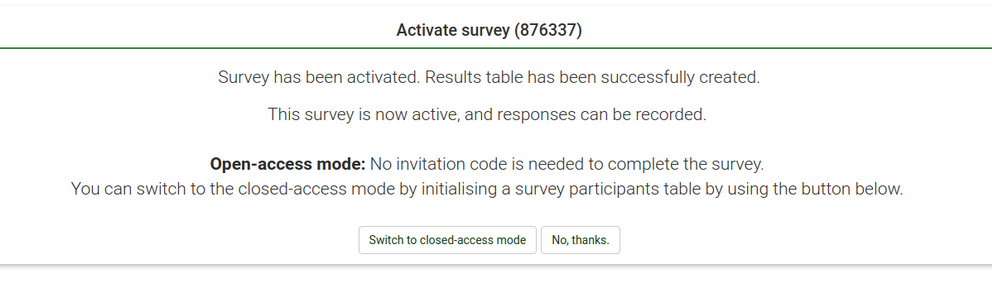 Das, was auch im Handbuch steht. Nämlich bei der Aktivierung einer UmfrageWas versteht Ihr in dem Zusammenhang unter einer "geschlossenen Umfrage"?