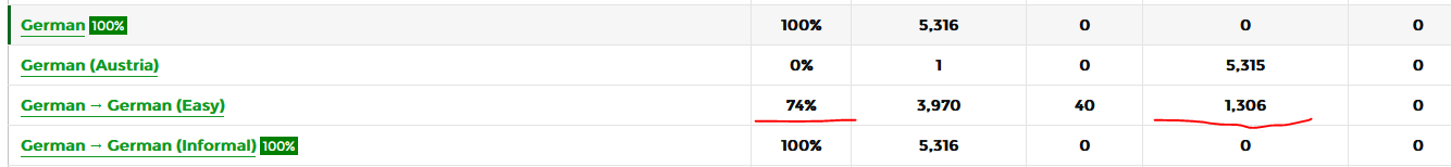 Wie Du hier siehst, ist diese Sprachvariation bisher nur zu 74% übersetzt; es fehlen noch 1306 Übersetzungen.