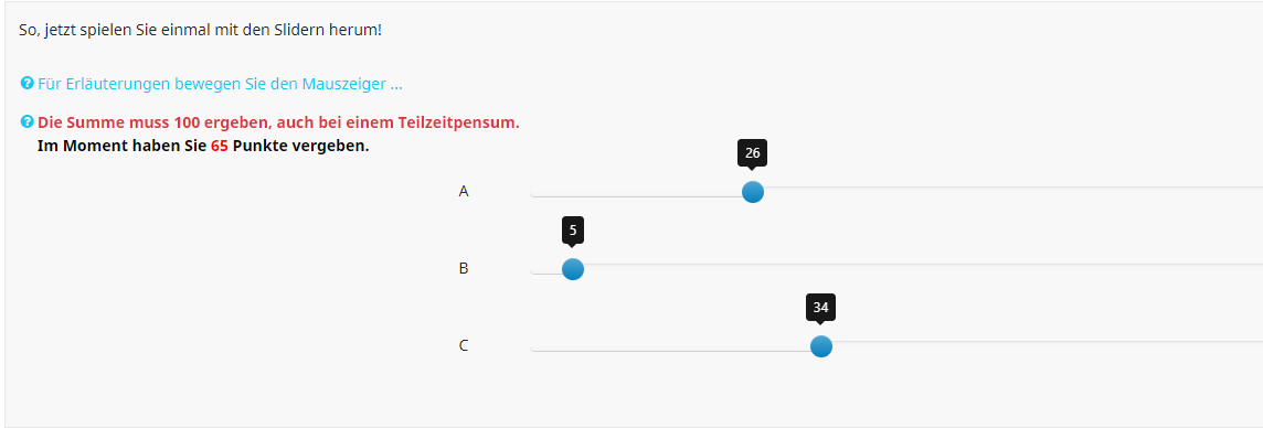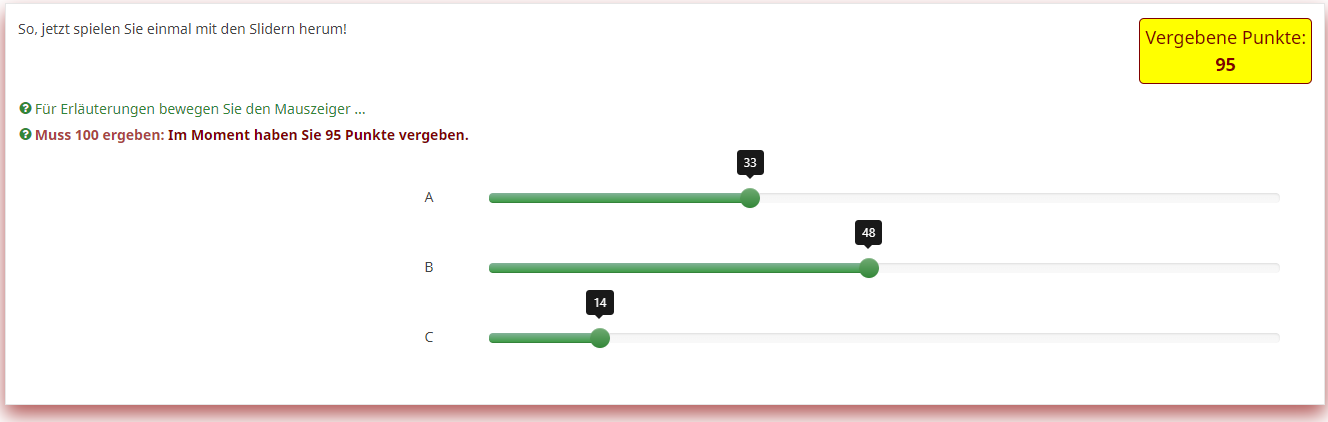 Das dritte Beispiel ("Muss 100 ergeben: Im Moment haben Sie 95 Punkte vergeben." ist genau das was ich möchte.