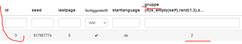 Du hast doch drei Gruppen mit jeweils 6 Videos.Meine Frage bzgl. der Gleichungs-Einstellung (rand1,3) Vater-Umfrage: du hattest es so gemacht, dass du jedes Video inkl. 2 Fragen als eine Fragengruppe hast, somit 6 Fragengruppen für Videos 11-16, ich bräuchte ja insgesamt 3 Gruppen.