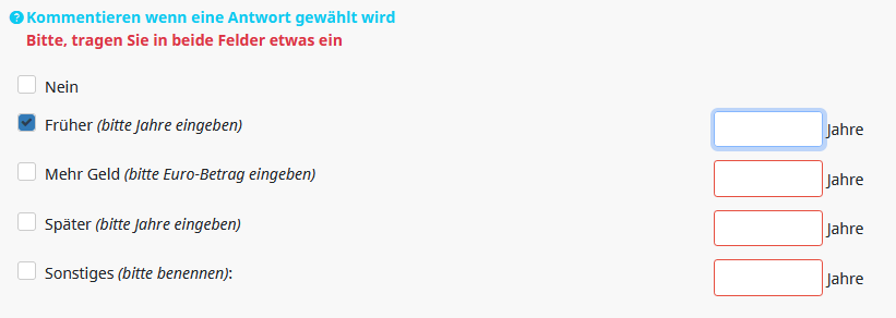 Wenn irgendwo ein Kästchen angekreuzt wurde, aber noch kein Wert, etwas wie "Bitte, tragen Sie den Wert ein!"