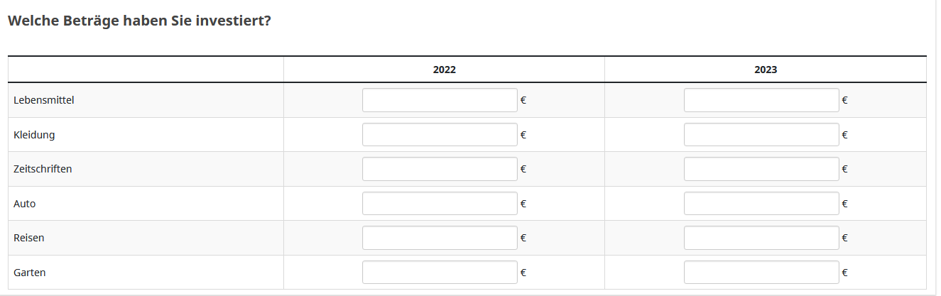 <script type="text/javascript"> $(document).on('ready pjax:scriptcomplete',function(){ // Input suffix $('#question{QID} :text.form-control').after('<span class="inserted-suffix"> €</span>').css({ 'display': 'inline-block', 'width': '80%' }); $('#question{QID} input[type="text"]').css({ 'width': '50%' }); }); </script>
