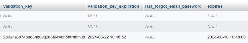 Defaultmäßig werden für "validation_key_expiration" wohl 2 Tage gesetzt.