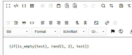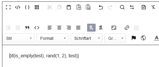 Das soll es doch wohl nicht sein.<code>{if(is_empty(test), rand(1, 2), test)}</code>