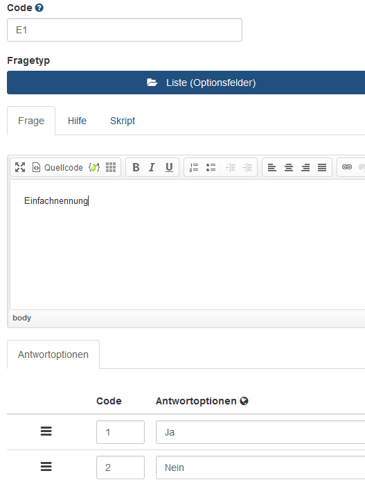 Teilfragen gibt es in Mehrfachnennungen und Matrizen. Man kann sich ja eine Mehrfachennungsfrage vorstellen wie eine Menge einzelner Fragen, die mit "Ja" oder "Nein" beantwortet werden.