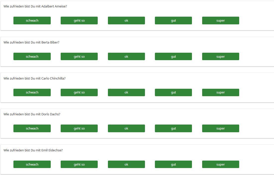 - Freischaltung nur für die schlechtesten Bewertungen. Bei oben genanntem Bsp. also nur für die beiden „schwach“ Bewertungen