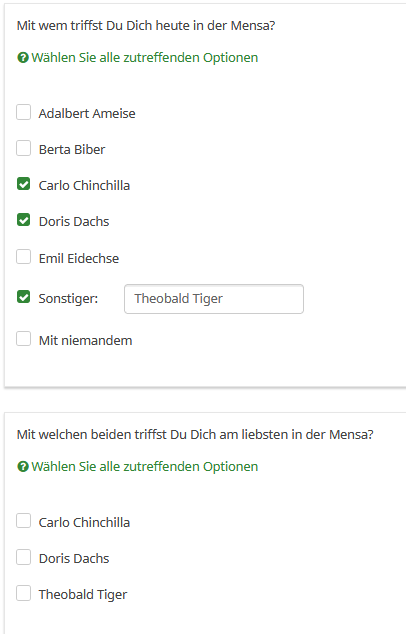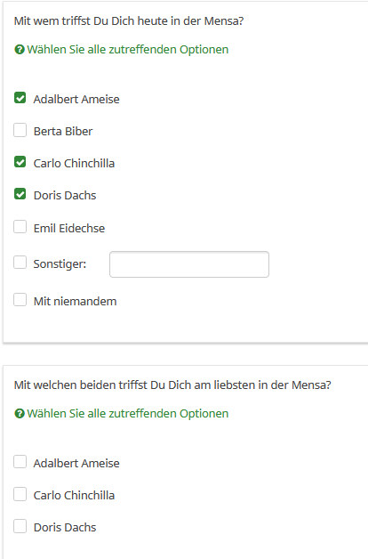 ich habe in einer Befragung zwei Mehrfachantwortenfragen, D3 und D3b.